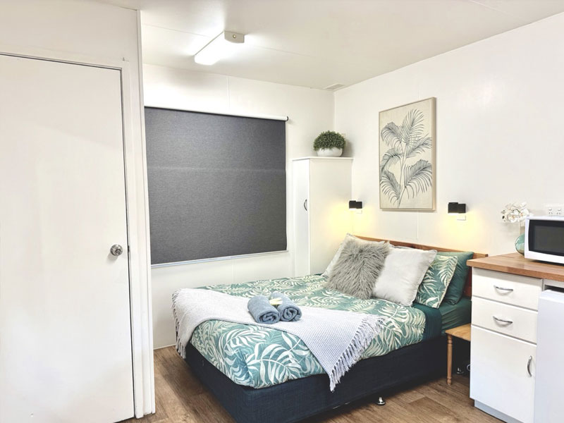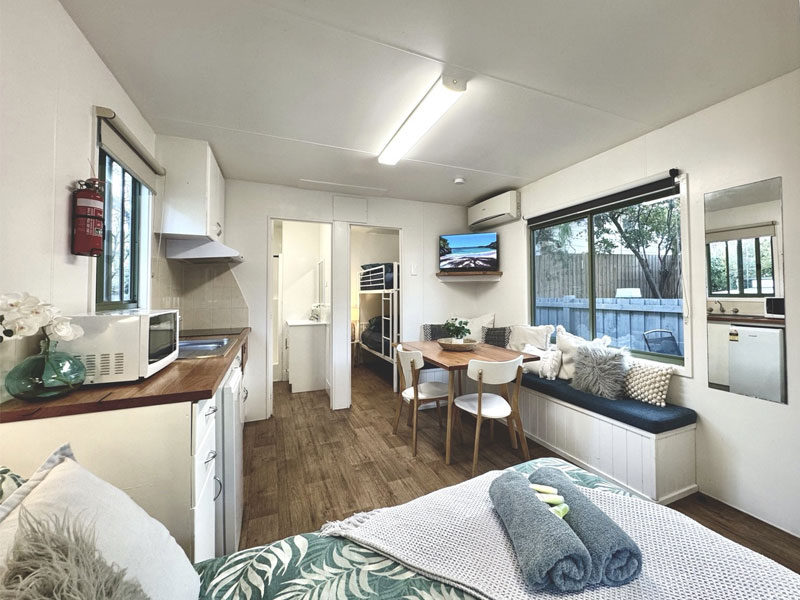 Step outside onto your private outdoor deck, complete with table and chairs, and soak up the peaceful park atmosphere. With air-conditioning, heating, WiFi, this accommodation is perfect for your next Schoolies trip!